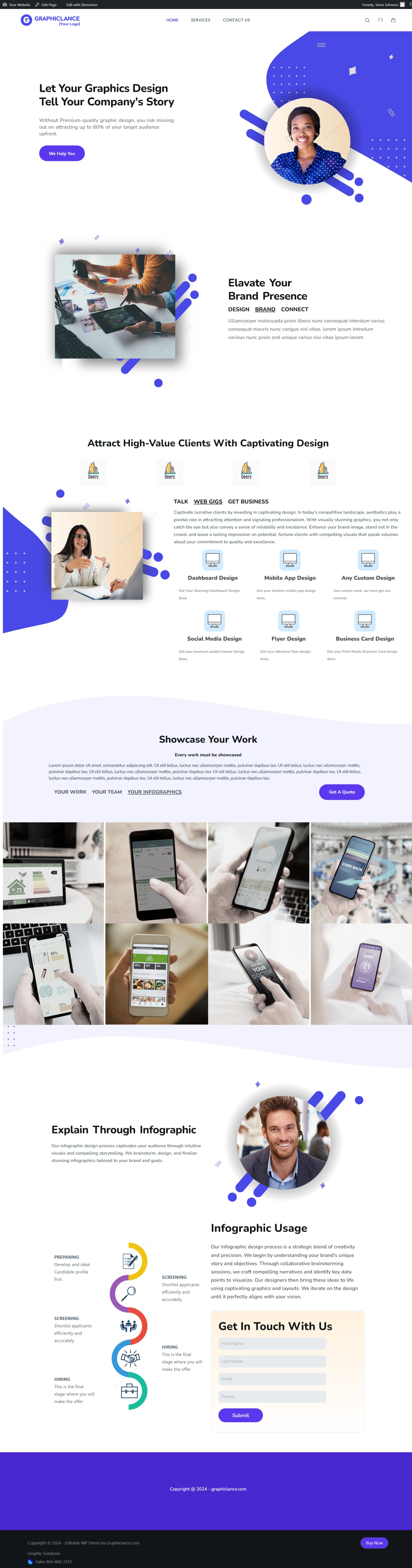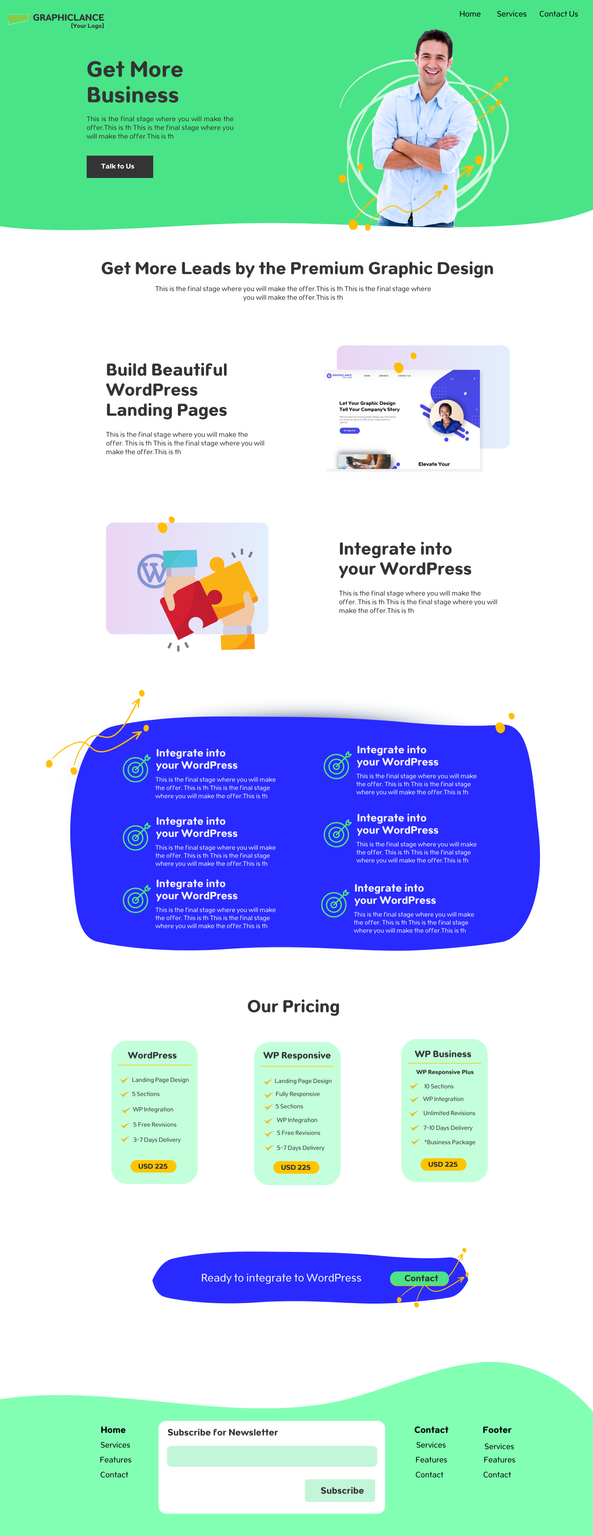 At Graphiclance, we understand the importance of a powerful online presence. Our custom WordPress landing page development service is designed to help you stand out in a crowded digital landscape. We start with a unique graphic design tailored to your brand, featuring four distinct sections that ensure your message is communicated clearly and effectively. Once the design is approved, our team of skilled developers brings it to life with a fully functional WordPress website that is both visually appealing and highly functional.